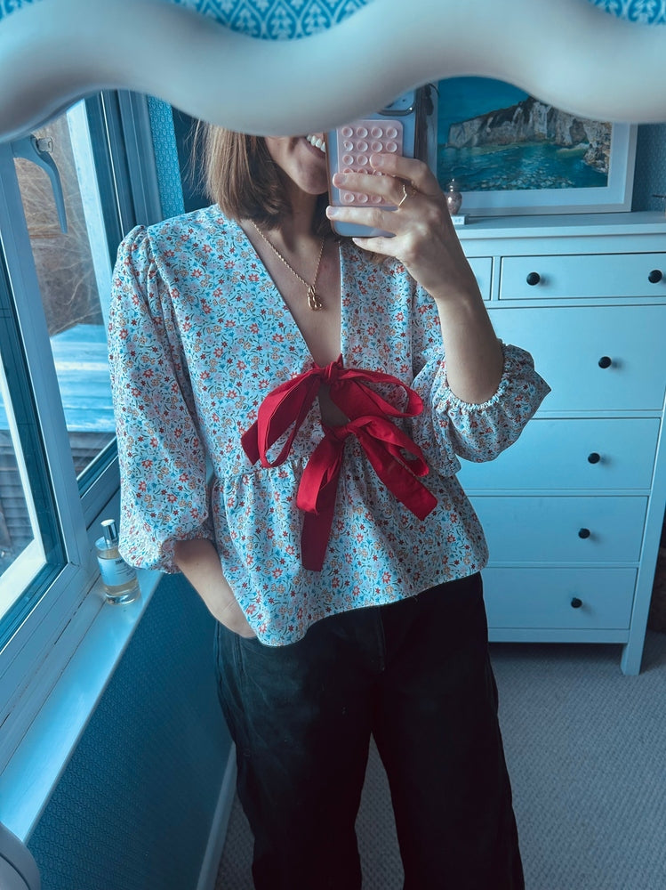 Beautiful Devizes top made from vintage fabric, with red ties that make the little flowers pop perfectly.