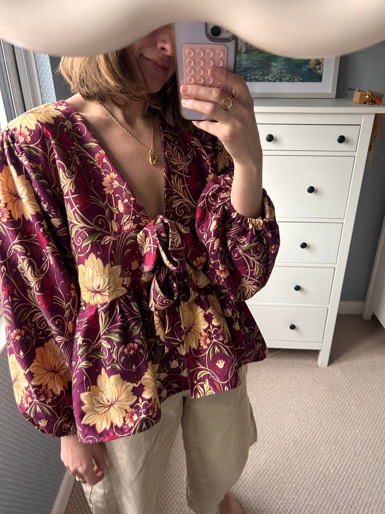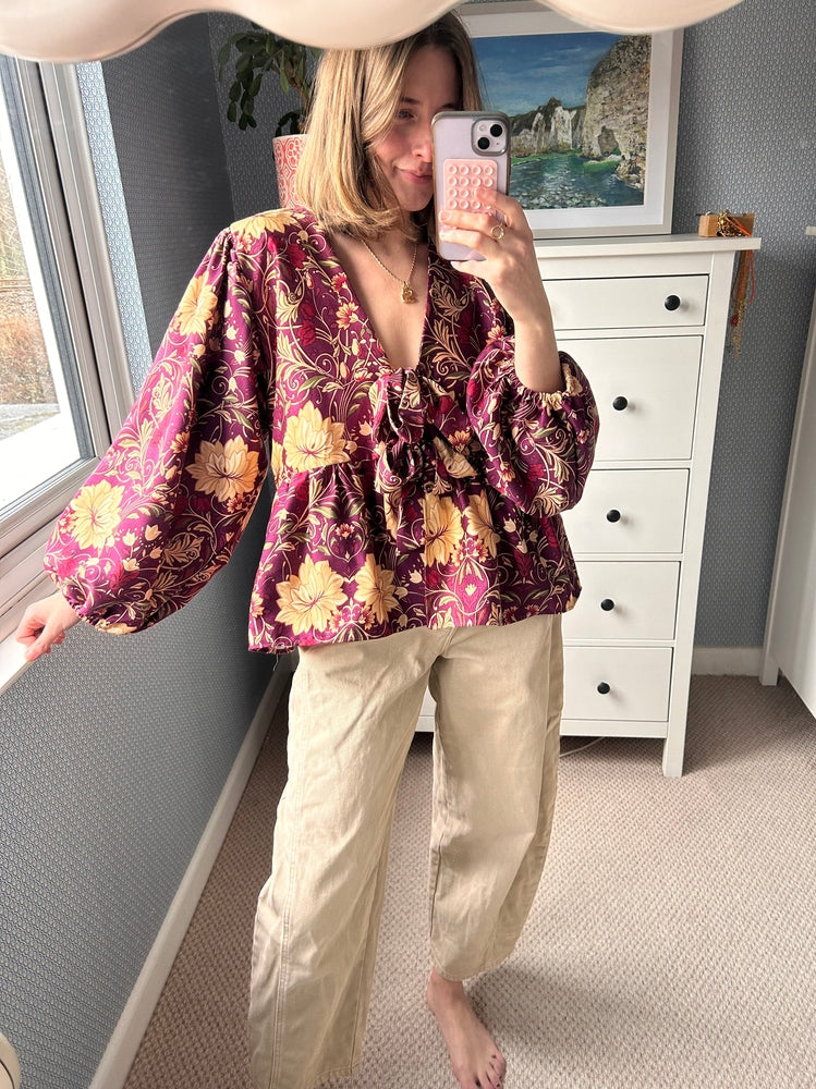 Devizes top with a peplum hem and long sleeves with elasticated cuffs.
