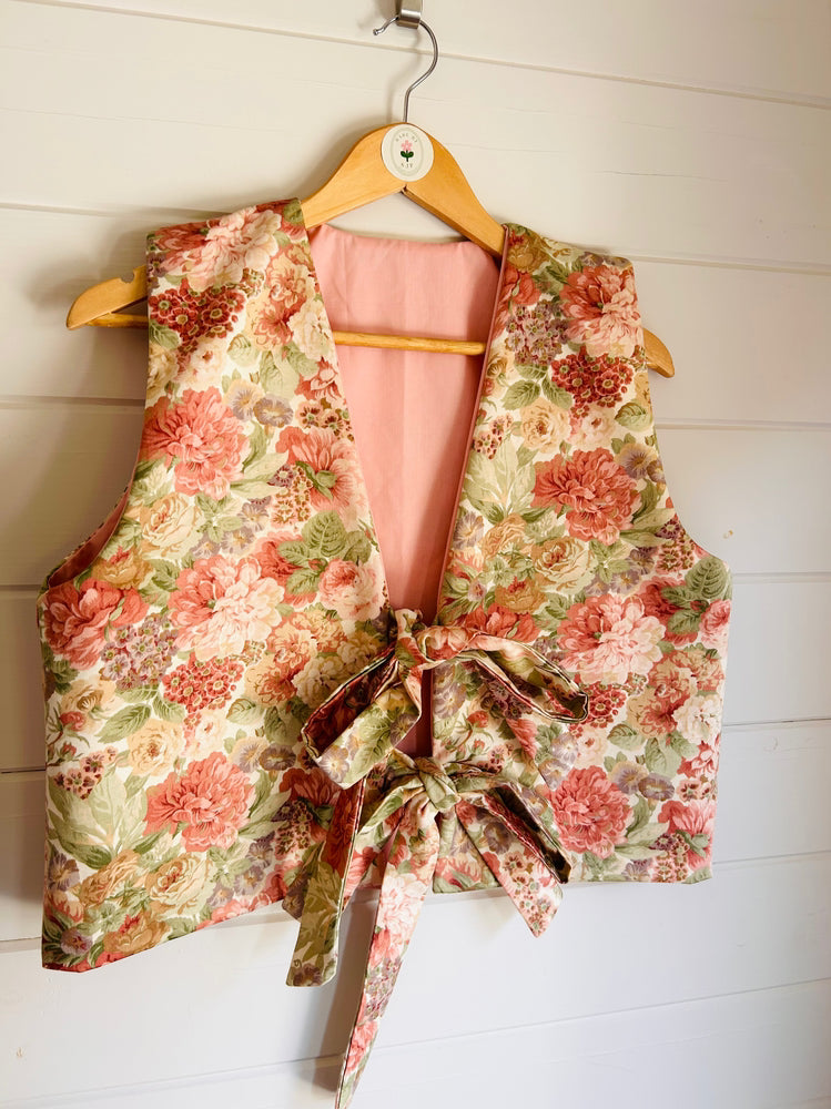 Beautiful Devizes top made from a preloved curtain. Gorgeous floral Sanderson favric, straight hem and 2 ties.