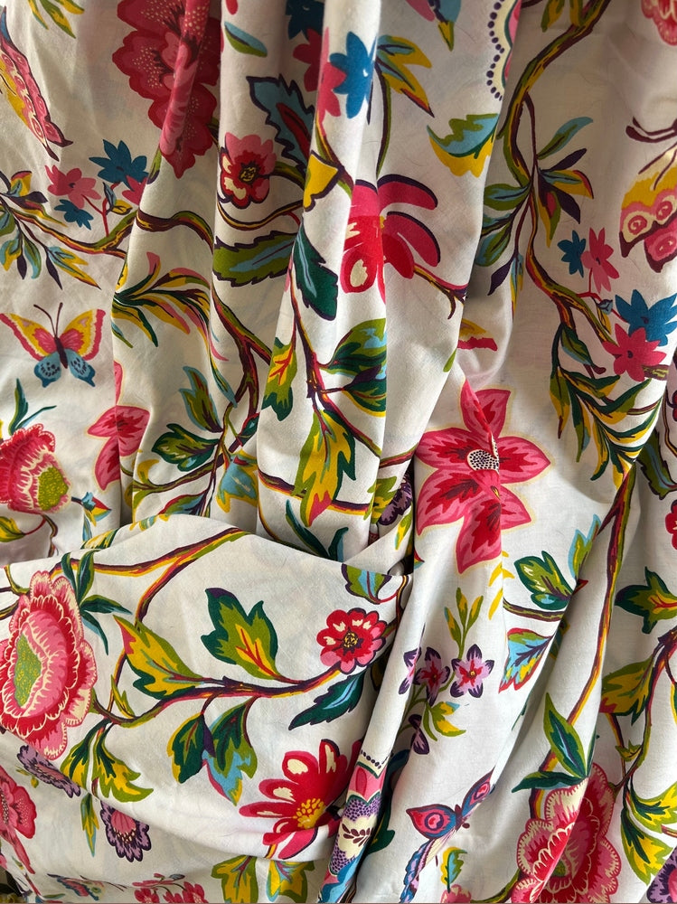 Most of our fabrics are cotton or a cotton/polyester blend, but due to the nature of sourcing second-hand, we can’t always guarantee the exact composition. If fibre content is important to you, please contact us before purchasing.