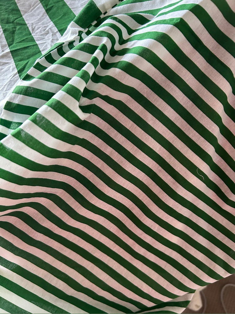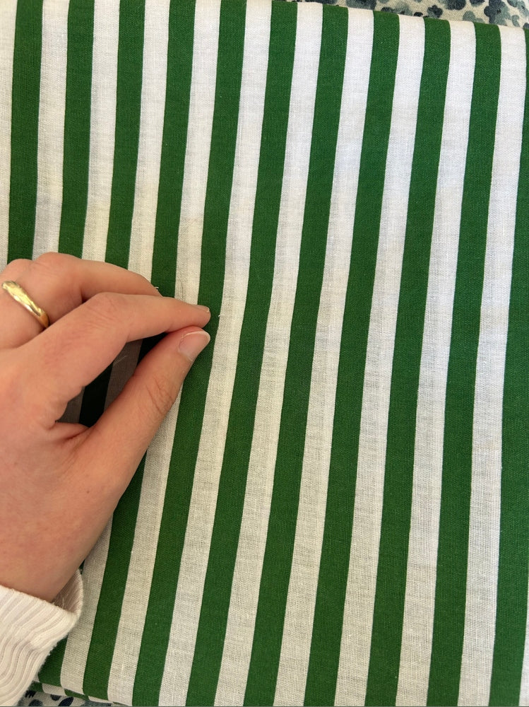 Most of our fabrics are cotton or a cotton/polyester blend, but due to the nature of sourcing second-hand, we can’t always guarantee the exact composition. If fibre content is important to you, please contact us before purchasing.