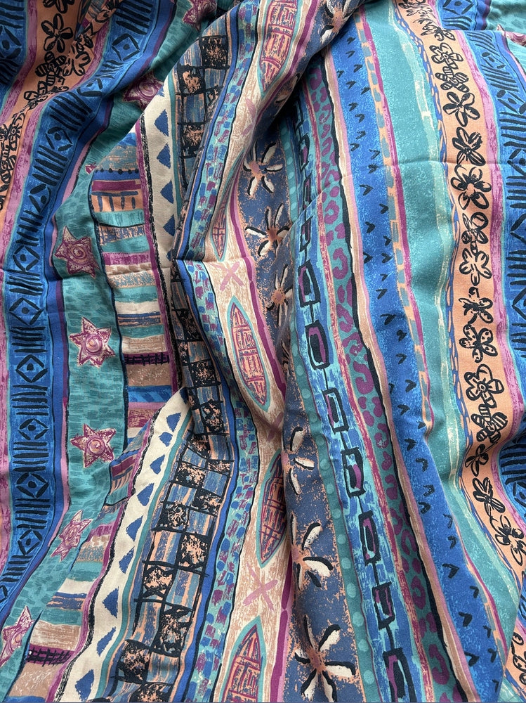 Most of our fabrics are cotton or a cotton/polyester blend, but due to the nature of sourcing second-hand, we can’t always guarantee the exact composition. If fibre content is important to you, please contact us before purchasing.
