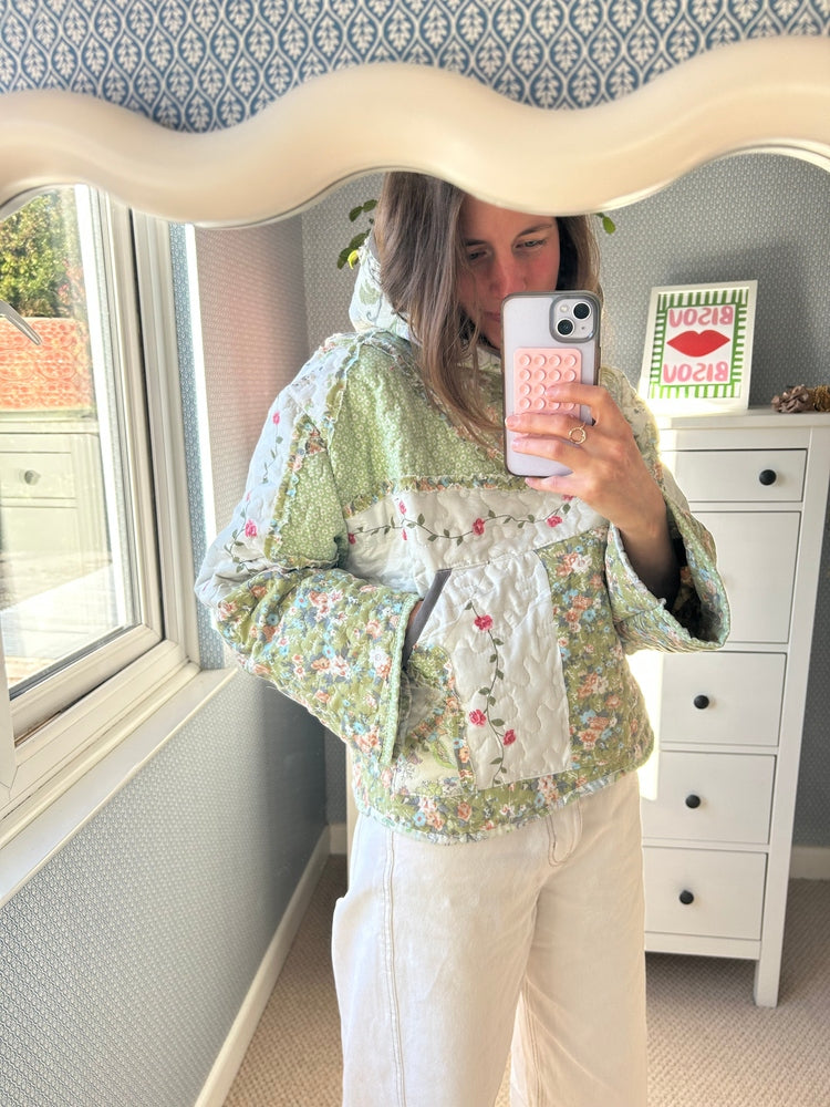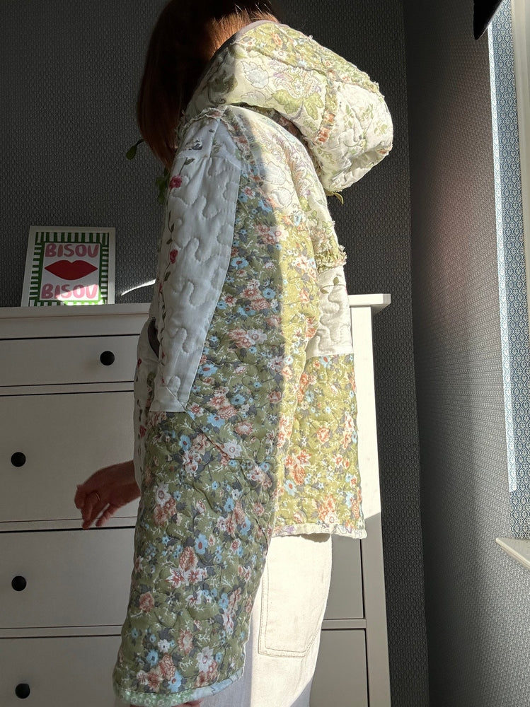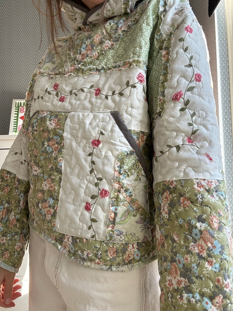 Beautiful hoody made from a preloved quilt. Big pocket on the front. Perfect for keeping you cosy this Autumn/Winter 💗