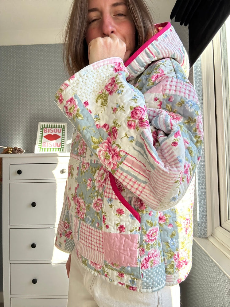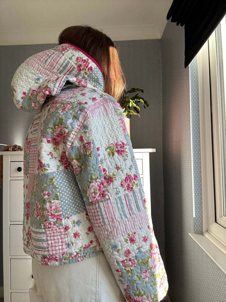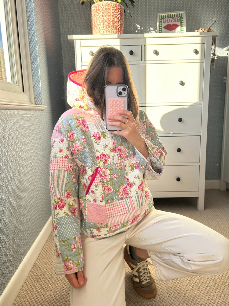 Beautiful hoody made from a preloved quilt. Big pocket on the front. Perfect for keeping you cosy this Autumn/Winter 💗