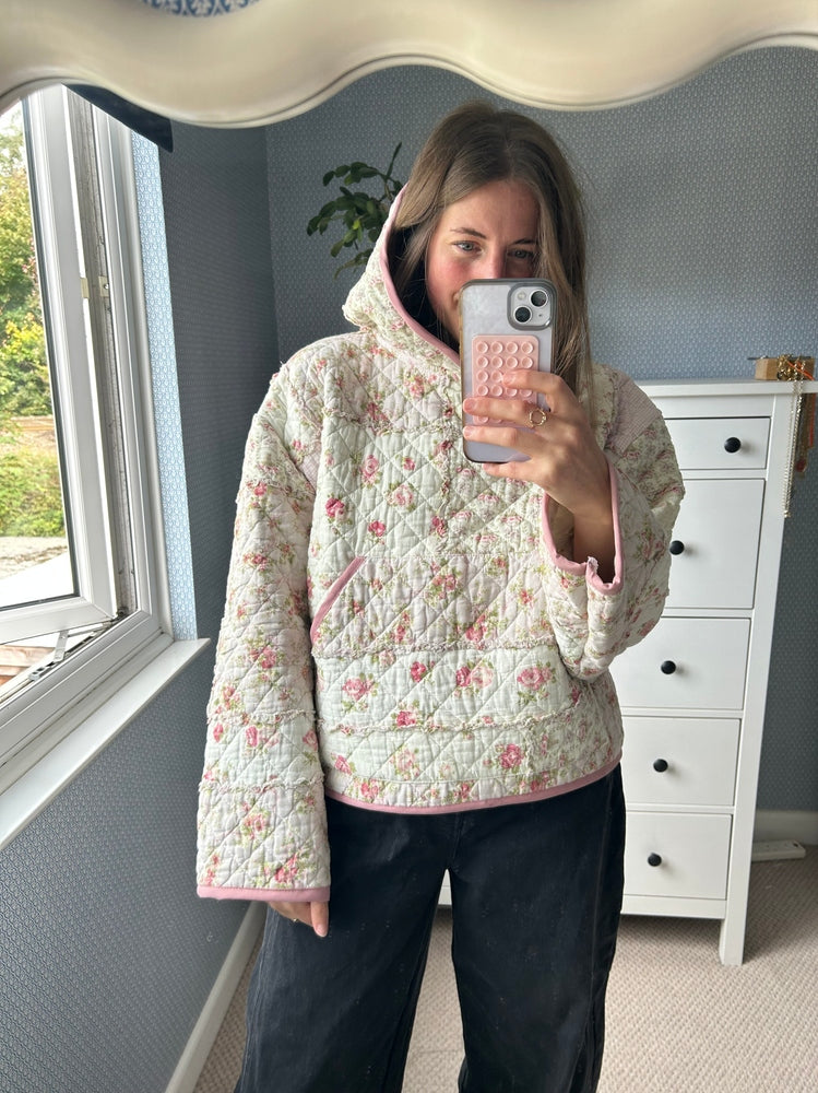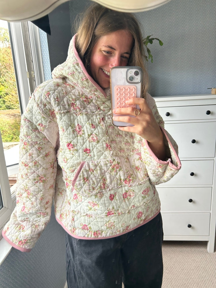 Beautiful hoody made from a preloved quilt. Big pocket on the front. Perfect for keeping you cosy this Autumn/Winter 💗